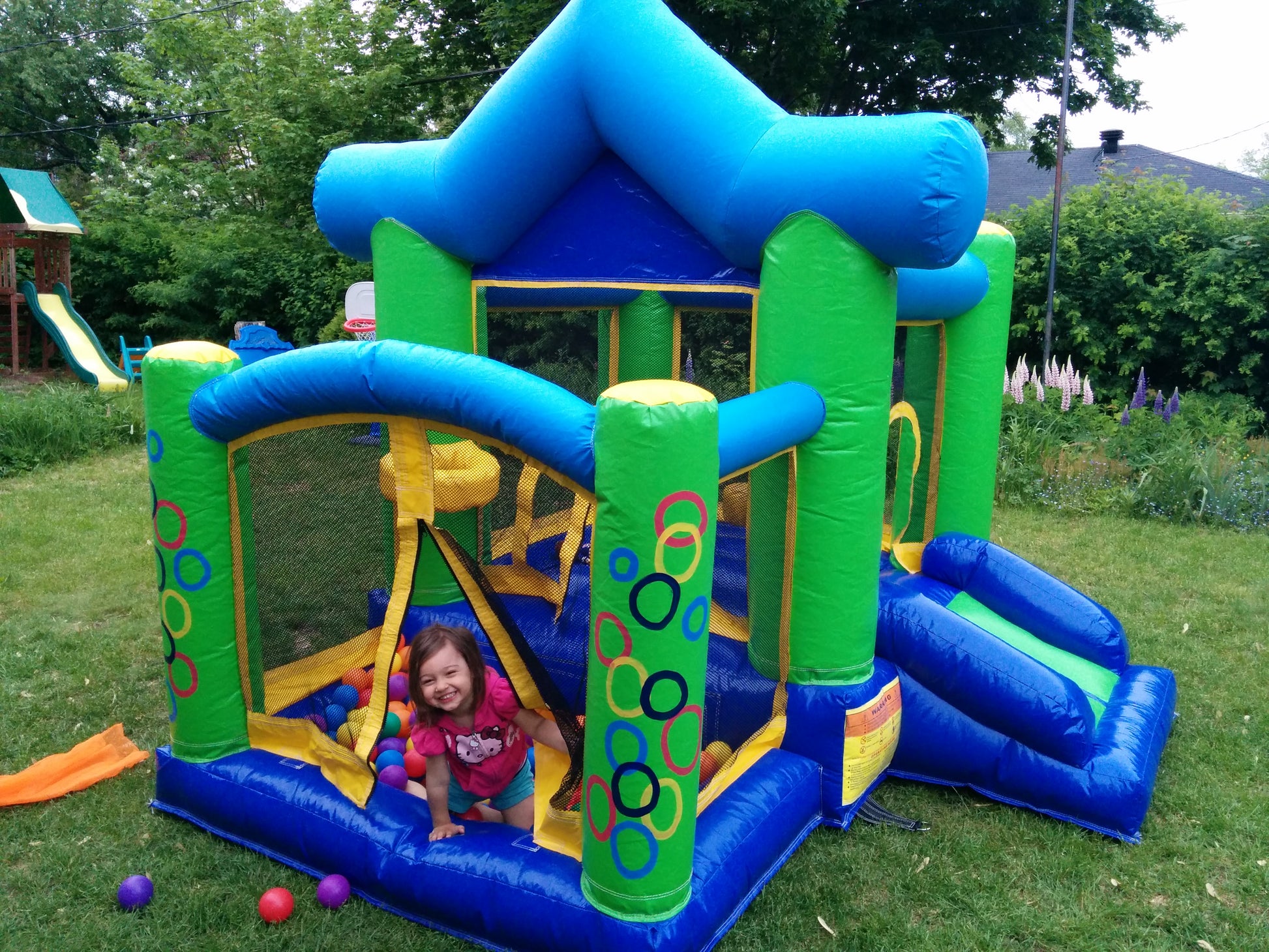 Un jeu des plus amusants pour vos enfants à prix très abordable : sautoir, glissade, panier de basket ball. 100 balles multicolores sont incluses!