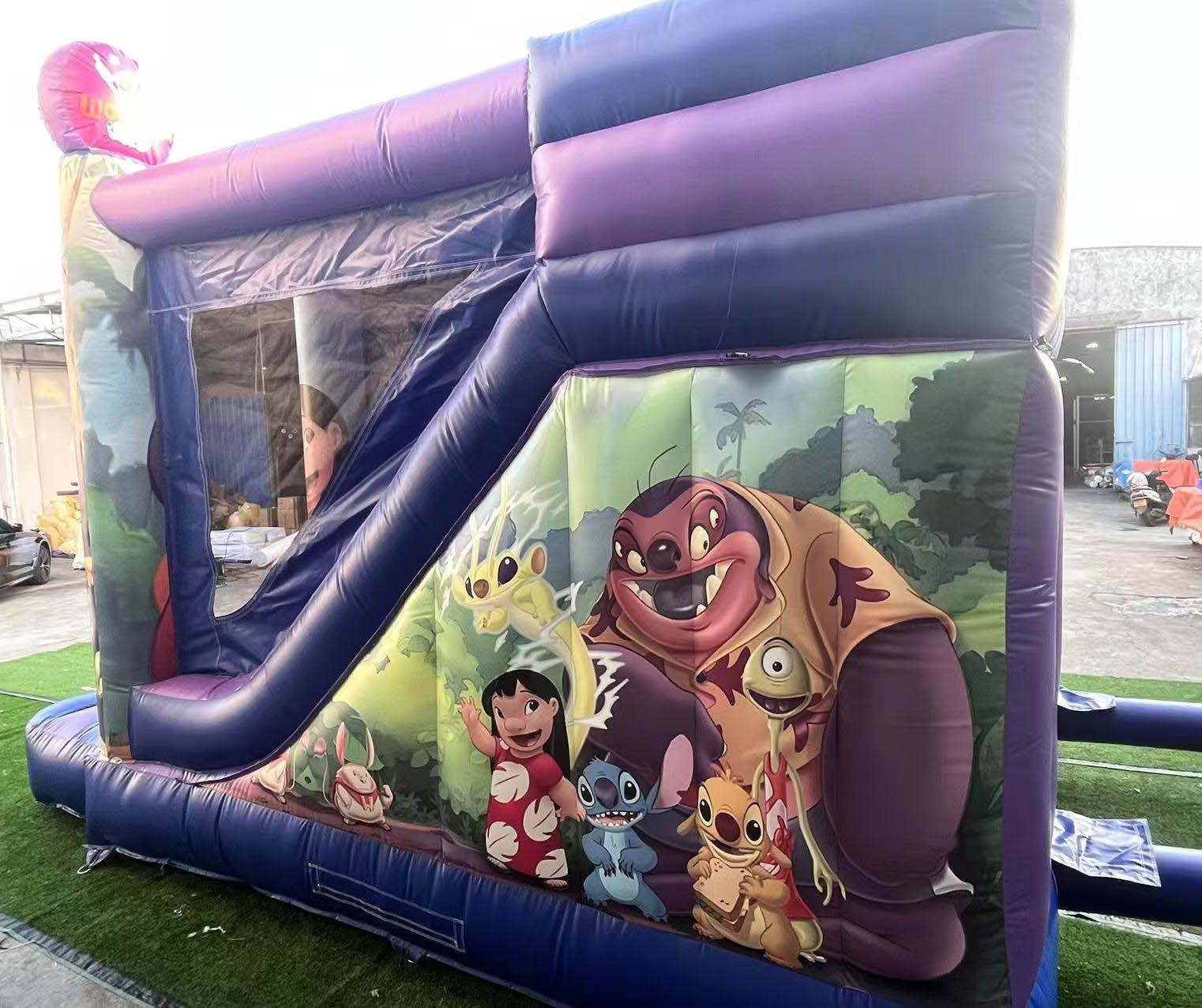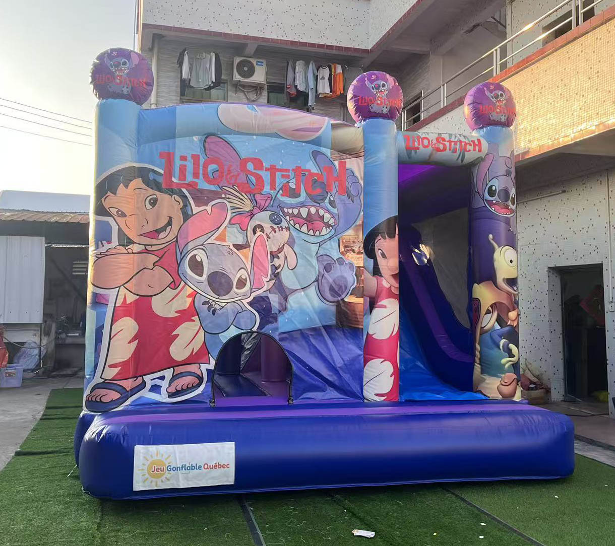 Ohana veut dire famille — et la famille, ça s'amuse ensemble ! Embarquez pour une aventure hawaïenne avec Lilo & Stitch dans ce château gonflable aux magnifiques teintes de bleu, violet et mauve. Lilo, Stitch, Angel et toute la bande des expériences de Jumba vous accueillent pour une fête digne des plus grandes îles !