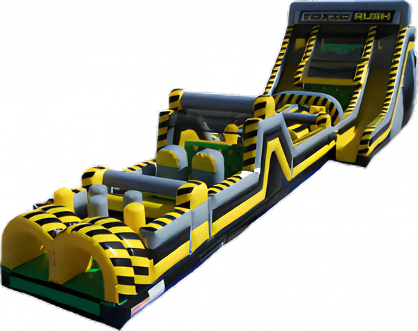Grande course à obstacles de 68 pieds de long incluant avec une méga double glissade de 22 pieds de haut.