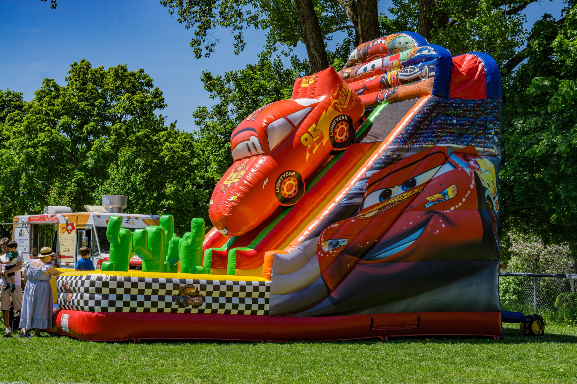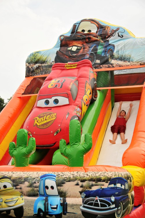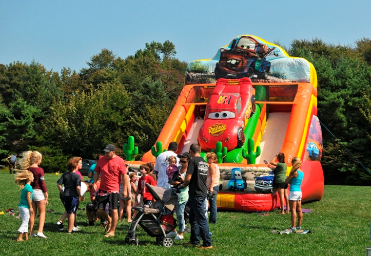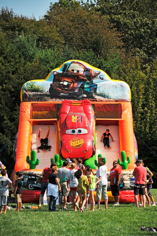 Dimensions : 27 x 15 x 28 pieds.La glissade gonflable les bagnoles (Cars). Avec un thème de voiture avec un design de voiture coloré et détaillé sur le dessus du toboggan, est fabriqué en PVC robuste qui est durable et peut résister à l'usure qui accompagne une action régulière. La glissade course voitures est un complément parfait à tout événement pour enfants ou adultes où les gens veulent s'amuser et profiter d'une compétition amicale.